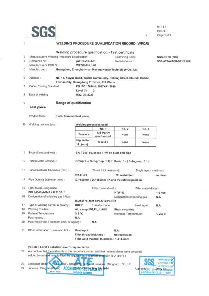 Welding procedure qualification record