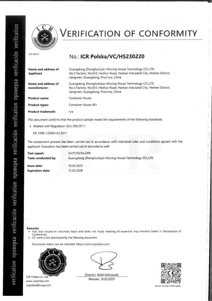 CERTIFICATE OF CONFORMITY OF THE FACTORY PRODUCTION CONTROL